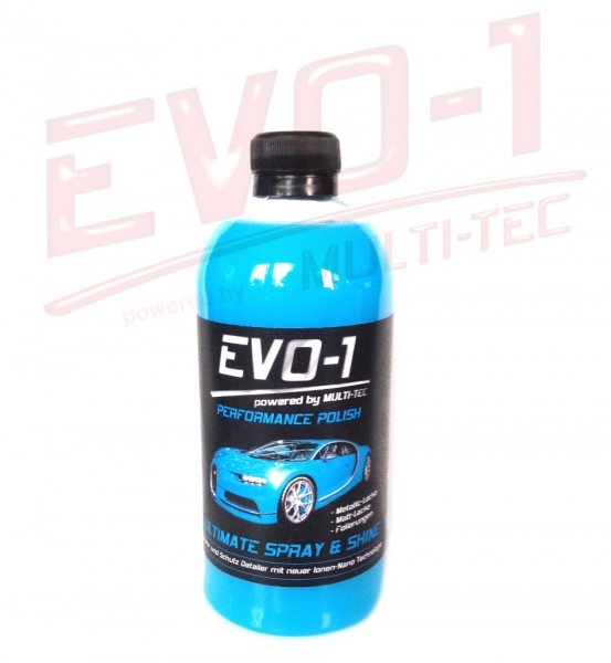 EVO-1 ULTIMATE SPRAY & SHINE sorgt für perfekte Ergebnisse auf nassen und trockenen Fahrzeugen und kann sowohl auf Metallic- und Matt Lackierungen sowie auf Folierungen verwendet werden. Die behandelnde Oberfläche sollte sauber und kühl sein ! Für beste Ergebnisse das Produkt auf ein weiches Mikrofasertuch geben, oder speziell bei nasser Fläche direkt auf den Lack sprühen und auf Hochglanz polieren, ggf. überschüssiges Wasser mit einem zweiten Tuch aufnehmen. Nicht antrocknen lassen und nicht auf der Windschutzscheibe verwenden !